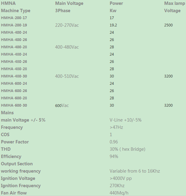 HMHA 22KW-27KW UV Lamp Power — Intelligent and Stepless: